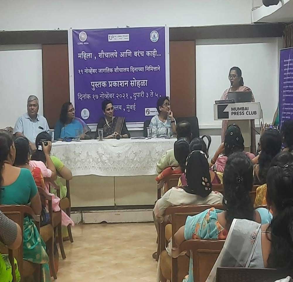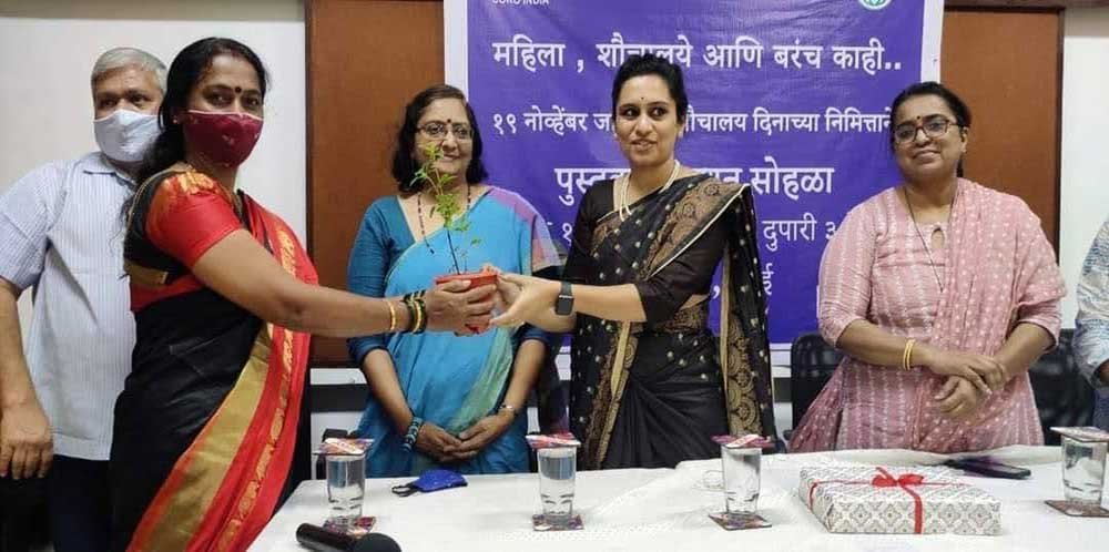 Collector Nidhi Chaudhary and Deputy Commissioner of Brihanmumbai Municipal Corporation Ms. Sangeeta Hasanale during the unveiling of the book Mahila Toilet and many more with help of SSSMS & Coro Right to Pee