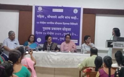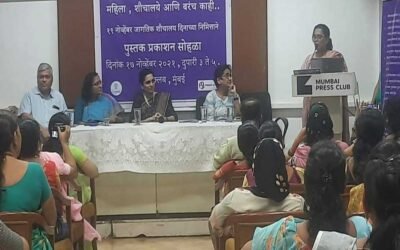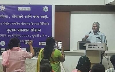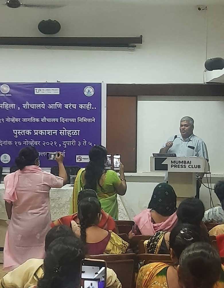 Collector Nidhi Chaudhary and Deputy Commissioner of Brihanmumbai Municipal Corporation Ms. Sangeeta Hasanale during the unveiling of the book Mahila Toilet and a lot,s of in association with Federation of Sanitation and Right to Pee and Koro.